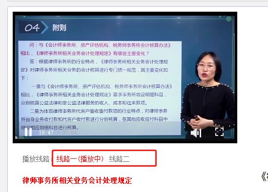 三分屏下,视频下方显示切换线路,默认播放线路一,当无法正常播放或者视频播放不流畅时,可选择切换线路二