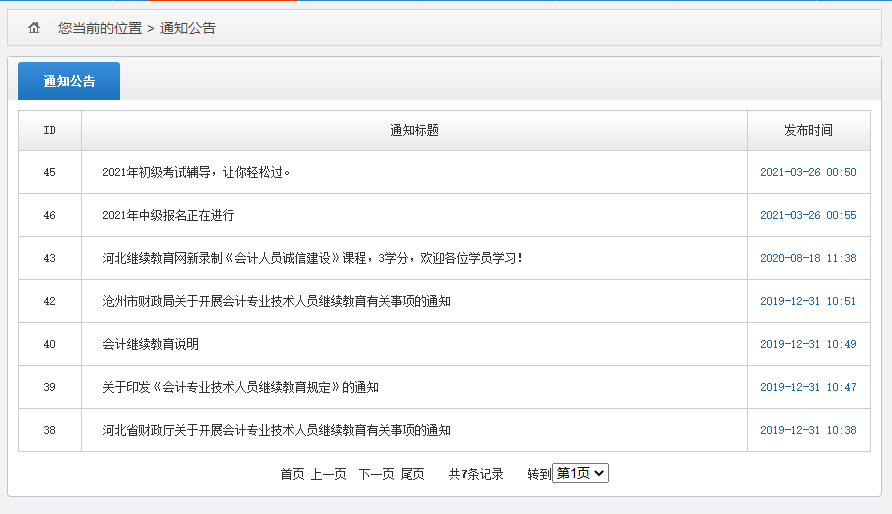点击左侧“通知公告”导航菜单,学员可以在这里看到有关继续教育的最新政策通知。