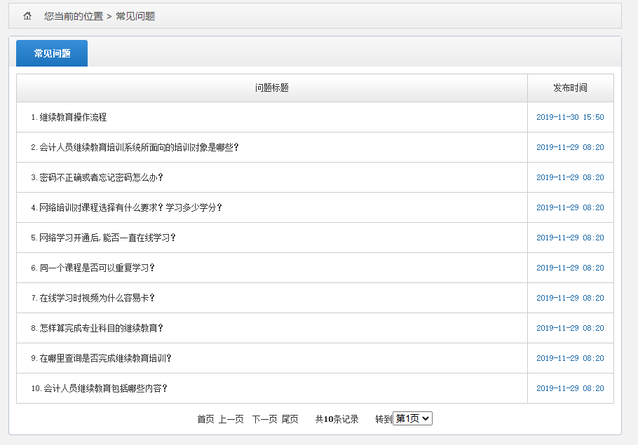 点击左侧“常见问题”导航菜单,学员在学习过程中遇到的问题可以在常见问题中寻找答案。没有得到解决的可以联系屏幕右方的在线客服。